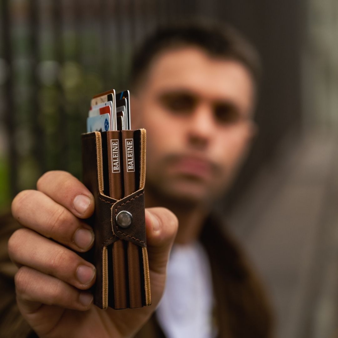 Llegó la nueva Doble Wallet de Baleine. Una billetera compacta pero con el doble de espacio. Lleva todos tus documentos y tarjetas en un solo lugar. Es una billetera con doble caja de aluminio incorporado (con un sistema de deslizamiento para guardar todas tus tarjetas y sacarlas de forma sencilla).