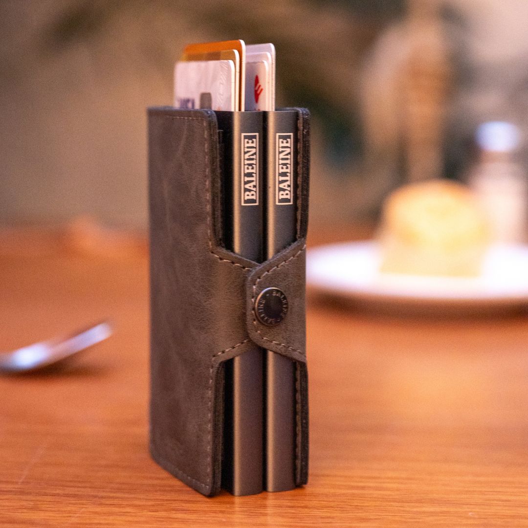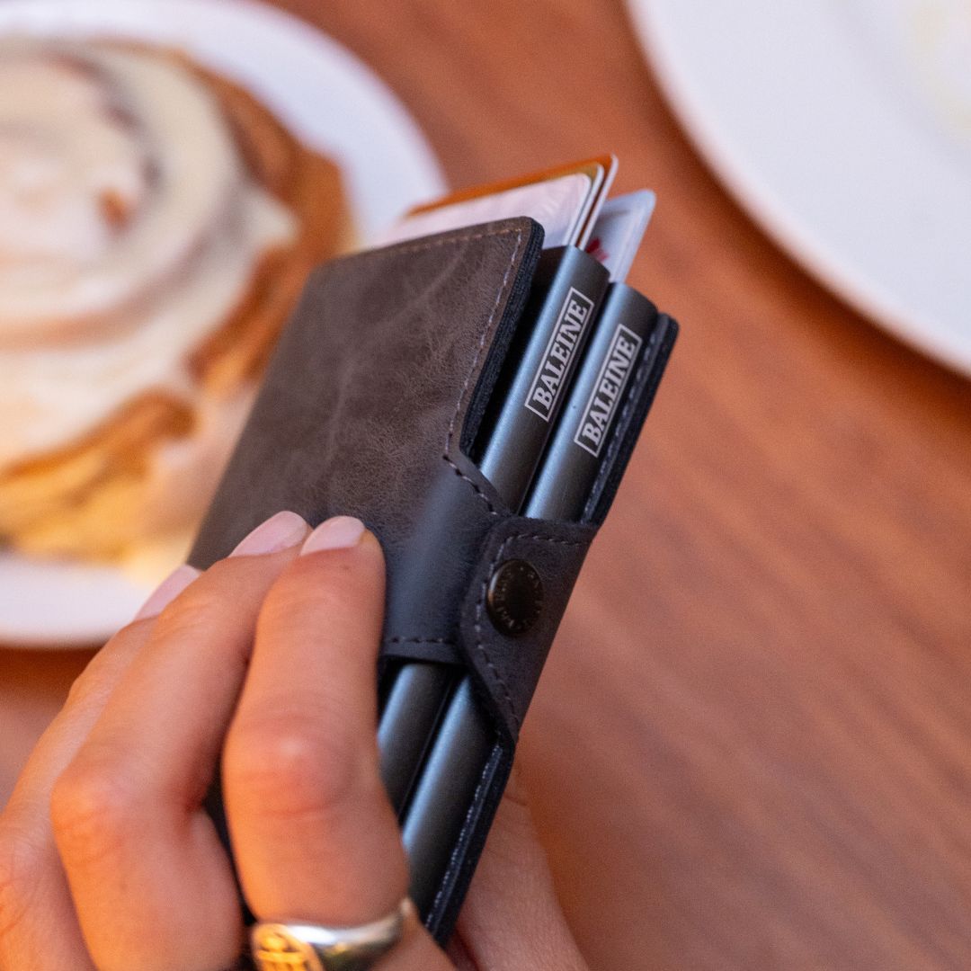 Llegó la nueva Doble Wallet de Baleine. Una billetera compacta pero con el doble de espacio. Lleva todos tus documentos y tarjetas en un solo lugar. Es una billetera con doble caja de aluminio incorporado (con un sistema de deslizamiento para guardar todas tus tarjetas y sacarlas de forma sencilla).