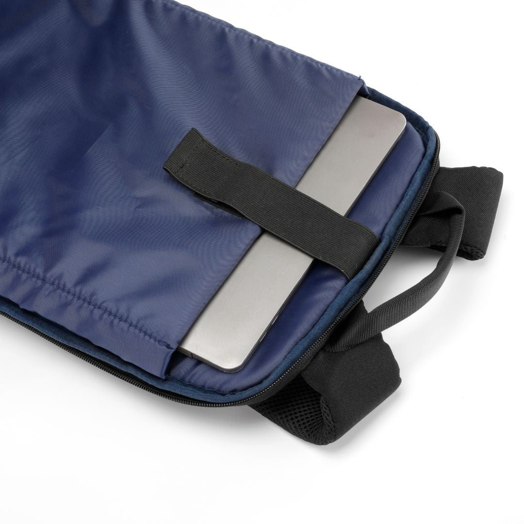 Capacidad para portátiles de hasta 15,6' con agarre de velcro para evitar desplazamientos del ordenador.
